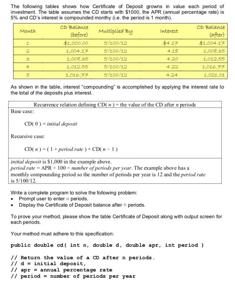 Solved The Following Tables Shows How Certificate Of Deposit Chegg Com